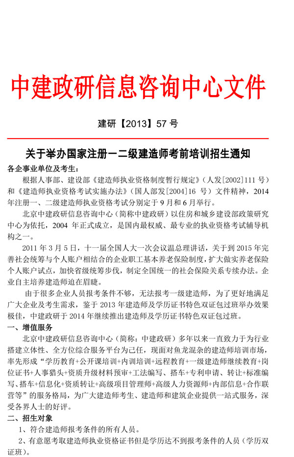 文章摘要:关于举办国家注册一二级建造师考前培训招生通知