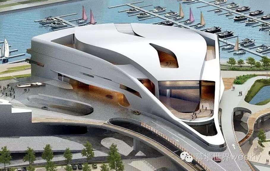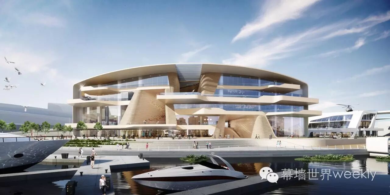 本项目从总平规划设计到设施建造均聘请具有国际游艇设施标准委员会资格的专业公司执笔,其中聘请澳大利亚INTERNATIONAL MARINA CONSULTANTS PTY LTD进行总平规划设计、BELLINGHAM MARINE AUSTRALIA PTY LTD为游艇泊位设计和施工;建筑外形按游艇来设计,采用高端进口防腐防火曲面固雅木、复杂的双曲面铝板、超白SGP夹胶玻璃,铸造了此项目的高端品质,全亚洲最大的游艇会所之一,成为珠江西岸唯一的游艇会。室外首创采用进口原木,打造异形高端木结构幕墙,同时达到防腐、防火、美观要求,为生态木国内在幕墙上应用提供了案例。