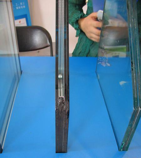 这是两个中空玻璃和夹层玻璃的复合型,可以看到中空玻璃之间的缝隙是很大的,一般是充入惰性气体,防尘防水,中空玻璃通常是可以使用钢化玻璃来做的,这样可以提高安全系数。