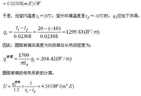 (2)建筑门窗和幕墙用圆弧玻璃系统的热工计算,采用圆柱体一维稳态导热问题的计算分析方法是可行的。